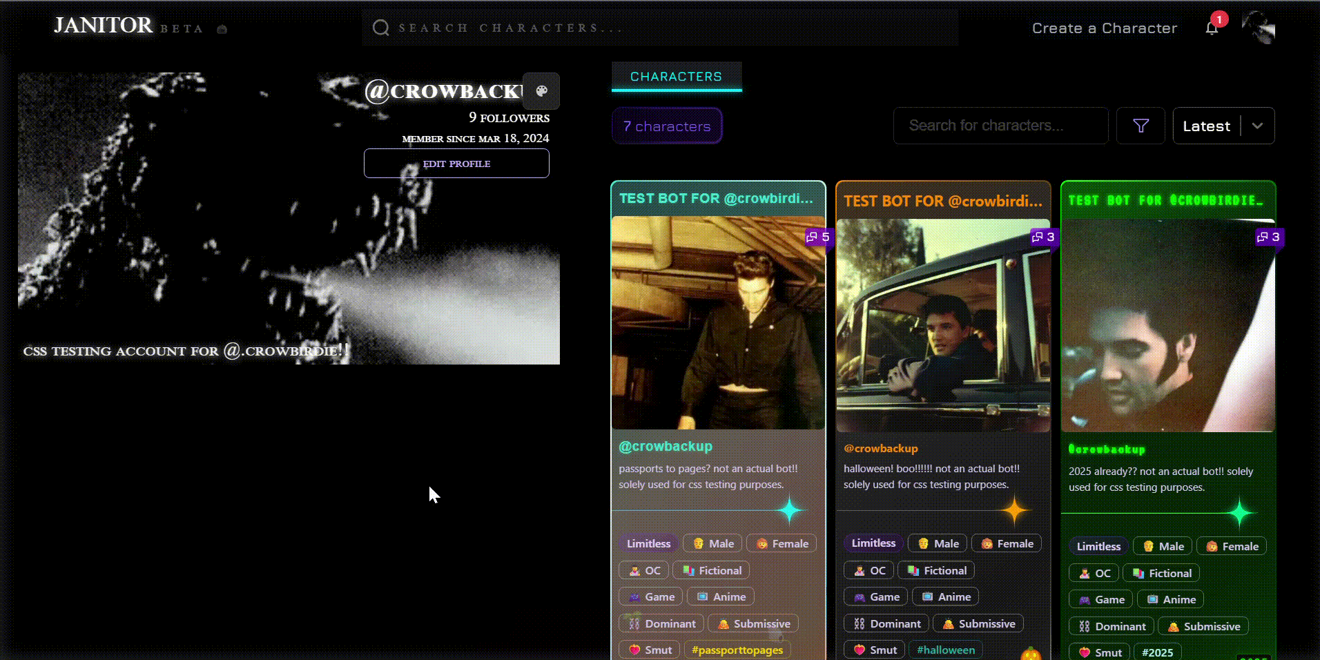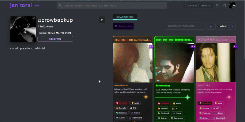 Specifically, check out the “profile customization” section under the “creator corner” in the janitor.ai creator discord